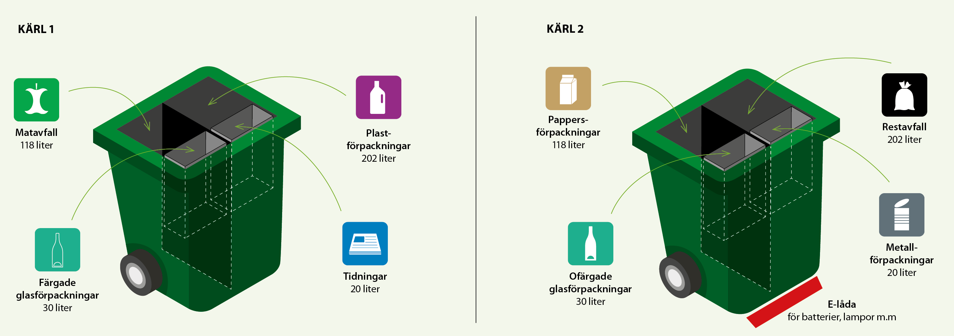 Leverans av 1 nytt delat kärl och 1 plomberat fyrfackskärl – samt hämtning av ditt nuvarande kärl